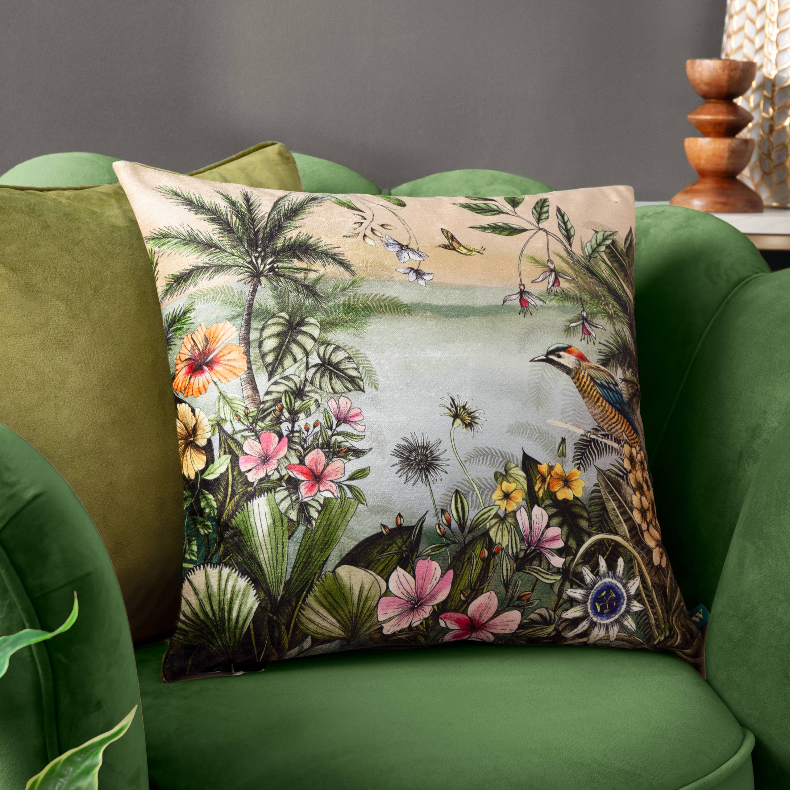 There is always something new to spot on this vibrant festive cushion. The soft, luxurious velvet printed front features snow topped houses, Christmas trees, snowflakes and even a snowman on the dark grey background. The reverse is made from opulent dark green velvet, surrounded by a gold piped trim and zip fastening. A wonderfully quirky addition to your festive home decor! Product Care: Do Not Bleach. Do Not Tumble Dry. Do Not Dry Clean. Machine Washable (40 degrees max). Featuring luxuriously soft printed velvet with snowflakes, snow-topped houses, Christmas trees and snowman, set against a dark grey background. Complete with a plain dark green velvet reverse, piped trim and zip fastening. Made of 100% Polyester, making this cushion super soft, yet durable. Designed, printed and made in the UK. Filling Details: Polyester Filled (100% Polyester), Feather Rich Filled (80% RDS Feather, 20% Polyester), Feather Filled (100% RDS Feather). Christmas | Christmas Décor | Home Décor