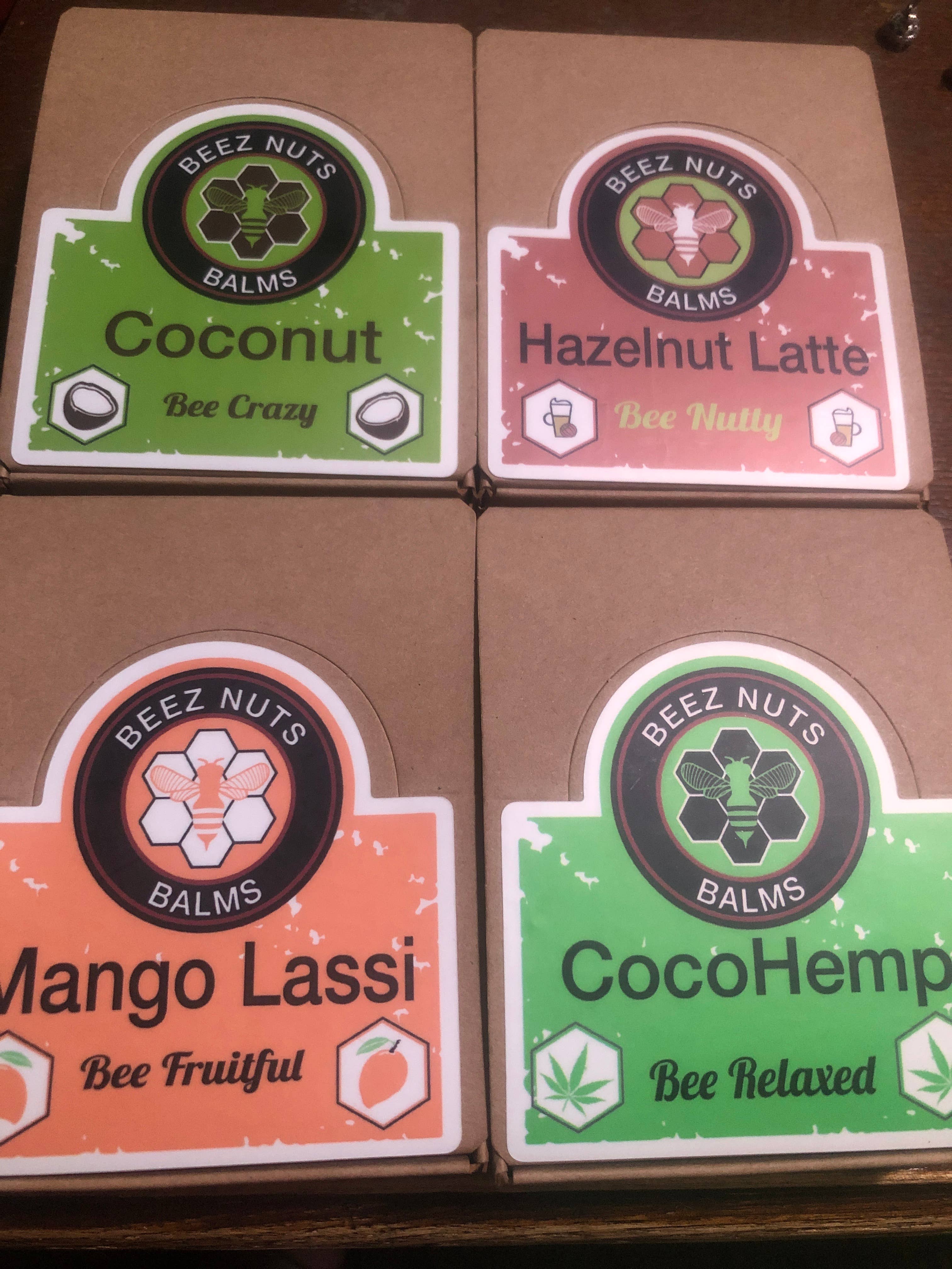 BEE NUTTY!!! Product details: enjoy the moisturizing goodness along with the rich nutty Hazelnut flavor and aroma of Beez Nuts Hazelnut Latte Lip Balm. The natural oils, butters, and ingredients used are designed to heal and relieve dry, chapped, and cracked lips. Beez Nuts lip balms make your lips silky smooth. Ingredients: beeswax, coconut oil, shea butter, sweet almond oil, macadamia nut oil, walnut oil, argan nut oil, aloe extract, vitamin e, flavor, stevia leaf extract 100% Petroleum & paraben free. Dimensions: net wt. 0.15 oz./ 4.25 g.