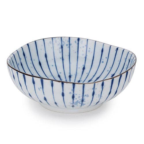 Bring playfully simple detail to breakfast cereal or ice cream treats with this blue spots 4-inch stamped porcelain bowl by now designs. The smooth finish and pedestal base elevate the look of this bowl on your dinner table. Size: dia4 x h2.5in, 10 oz Material content: porcelain Care instructions: dishwasher & microwave safe