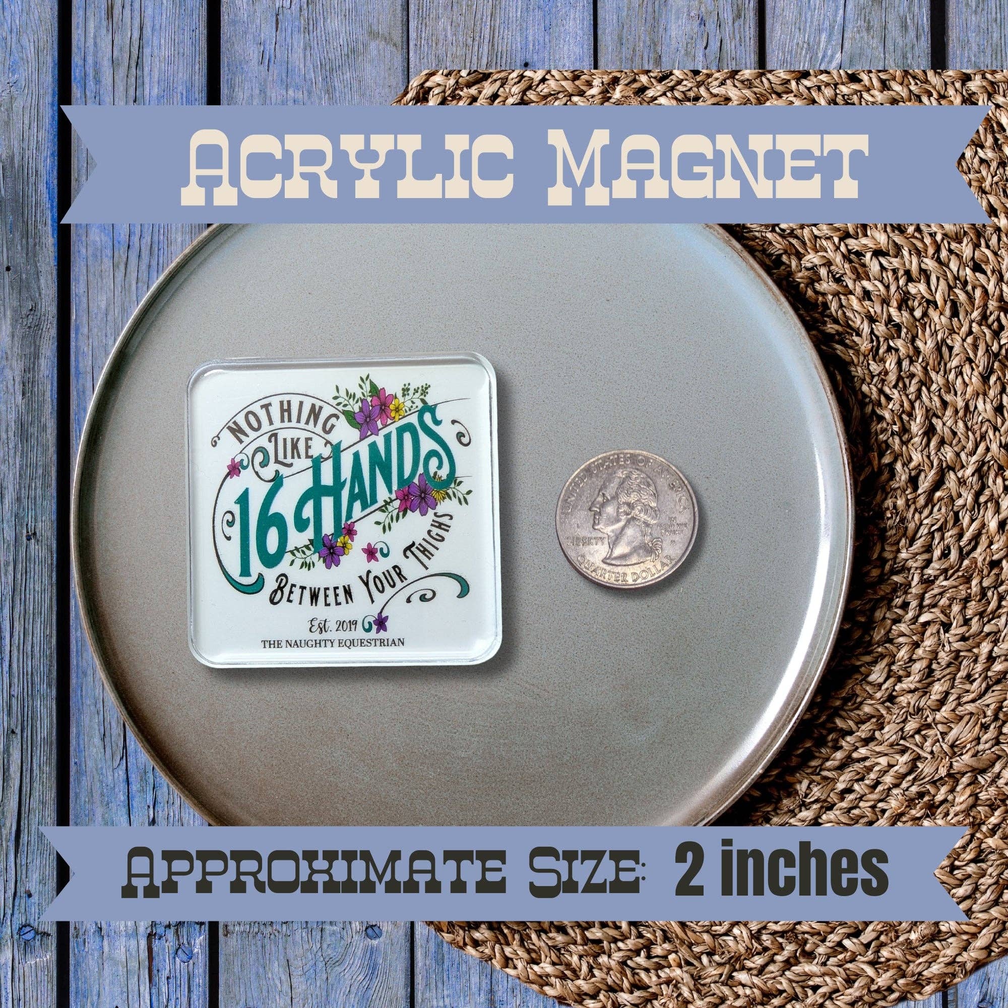 This armadillo is out here living its best life, strutting through a technicolor garden like it’s got front-row tickets to a wildflower fashion show. Packed with bold color and plenty of Texas attitude, this magnet is perfect for brightening up your fridge, locker, or anywhere else that needs a little personality. Durable magnets can be used as fridge, desk, or decorative magnets. Each magnet is a 2"x 2" square with a thick transparent acrylic top. From our barn to yours - The Naughty Equestrian