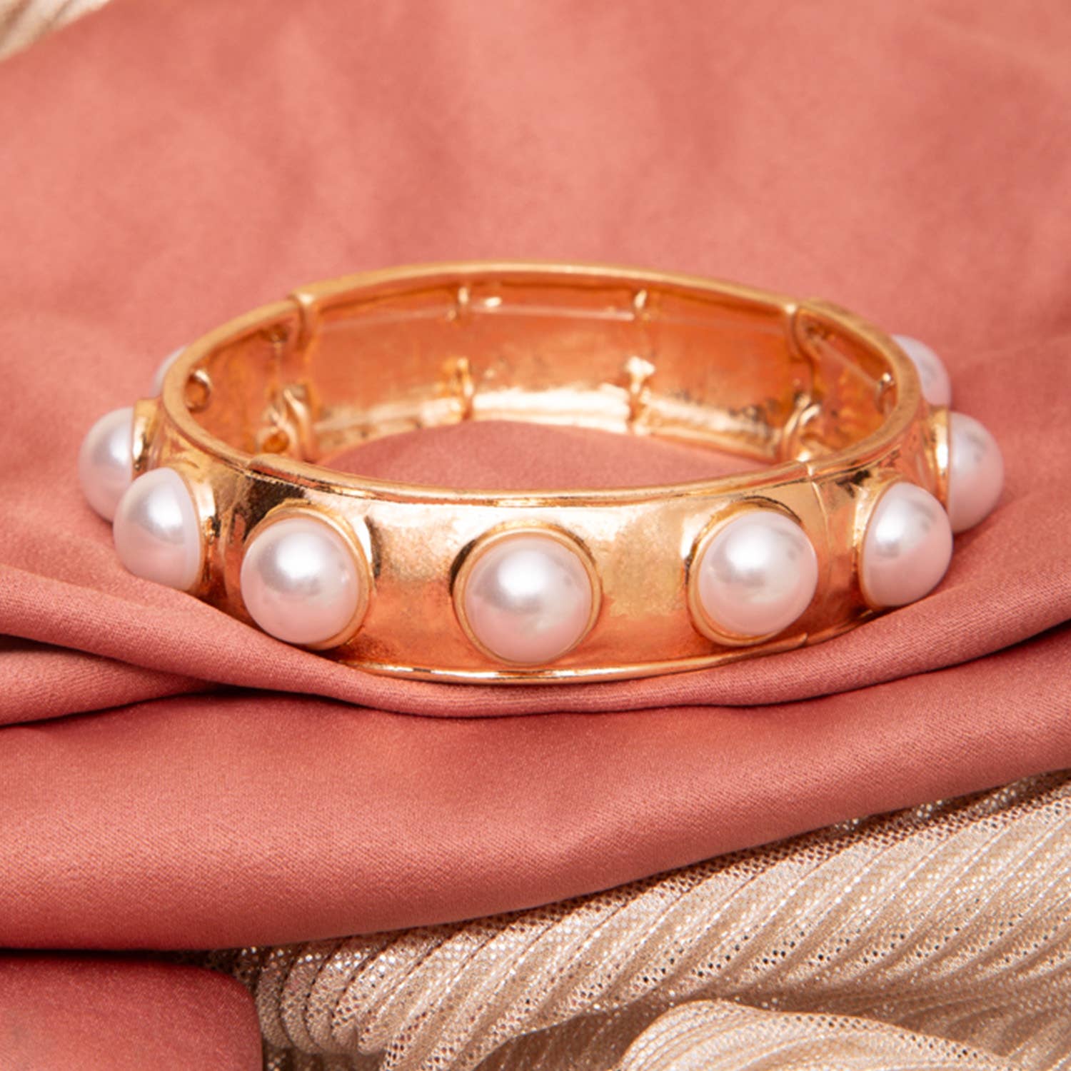 Curved Cuff Bracelet With Leather & Pearl
