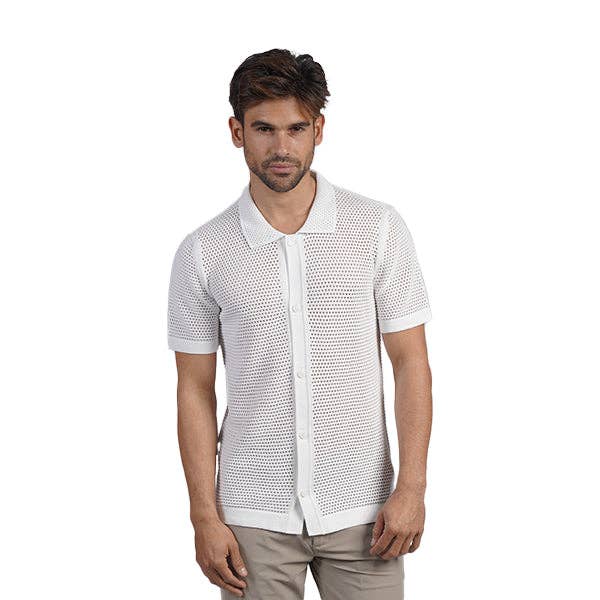 Cotton Natural Mandarin collar, short sleeve button down shirt. Available in White, Light Blue, and Dark Blue. Made from the finest Peruvian Pima Cotton. Soft and comfortable, breathable relaxed fit.