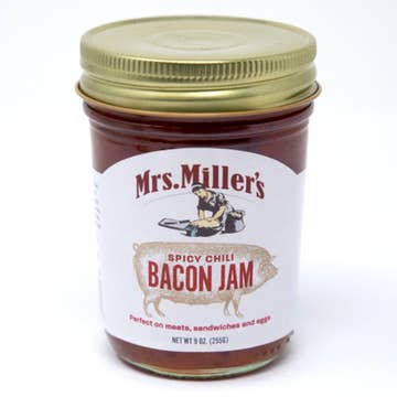 Made with real chunks of bacon, roasted red peppers, onions, and chili peppers, our Spicy Chili Bacon Jam will put just the right amount of spice and sweetness to your next burger, eggs, crackers or deli sandwich. Hand scooped in Ohio's Amish Country