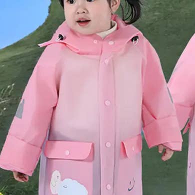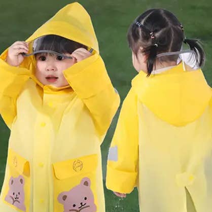 OUTDOOR FULL BODY RAINPROOF CHILDREN'S RAINCOAT 100% EVA SIZES : OS MADE IN CHINA REUSABLE,ATTACHED DRAWSTRING HOOD, CLEAR, DURABLE, LIGHTWEIGHT, WATERPROOF PLASTIC,COMPACT, TRAVEL SIZE,UNISEX DESIGN,ELASTIC CUFFS,ONE SIZE, ELASTIC CUFFSUNISEX HOODED LIGHT-WEIGHT BUTTON DOWN SEMI-SHEER EVA WATERPROOF PONCHO JACKET RAINCOAT,THIS REUSABLE RAINCOAT IS SUITABLE FOR ALL SEASON AND OUTDOOR ACTIVITIES, SUCH AS THEME PARKS, SCHOOL, SHOPPING, FISHING, HIKING, CAMPING, RAINY DAYS, WATER RIDES, ETC.