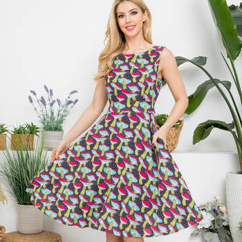 Wholesale Women's Retro Floral Rockabilly Vintage Dress, Black