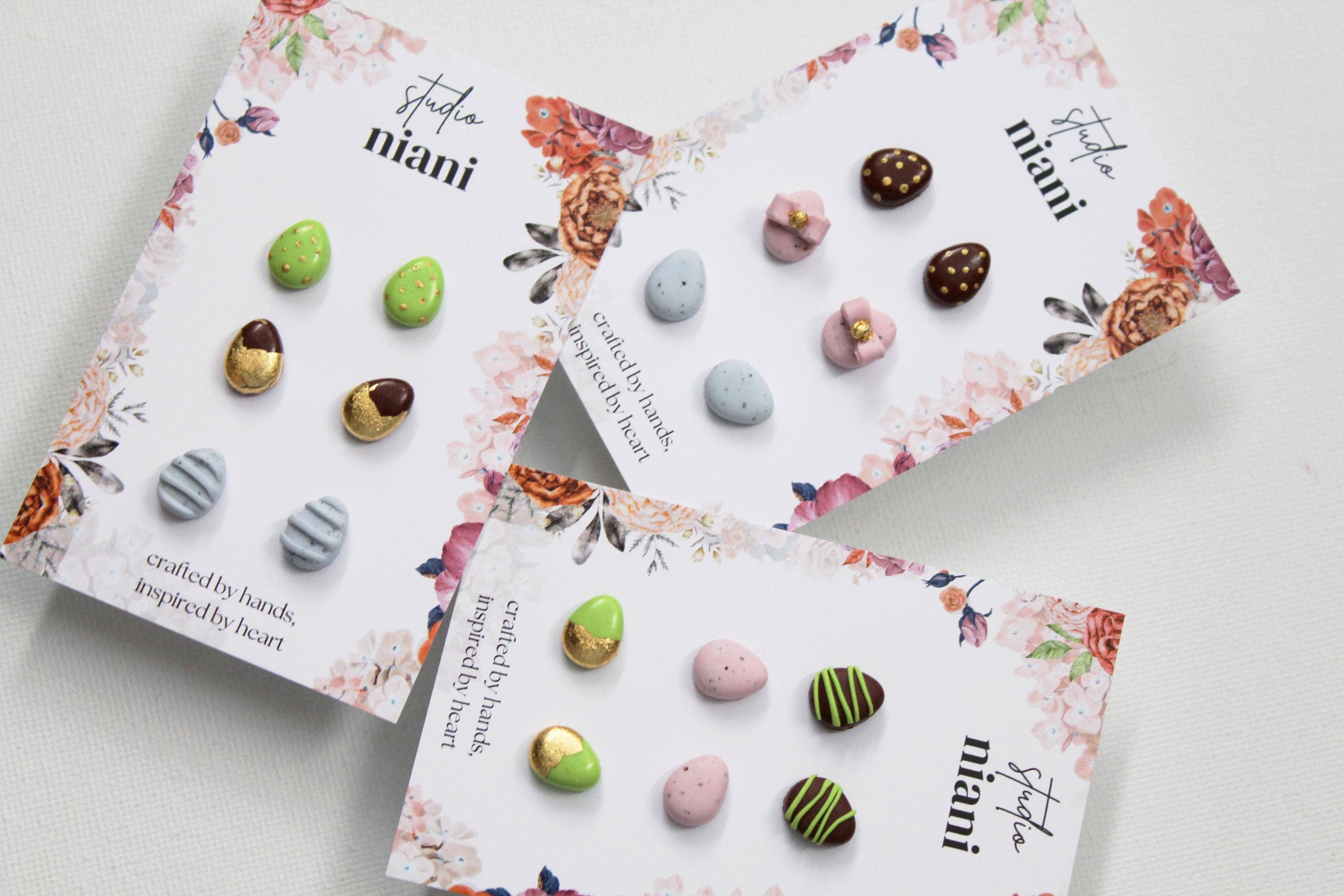 - Hypoallergenic stainless steel studs - Lenght is 2.60 cm, width is 3 cm - Ultra lightweight and comfortable - Multi colour Handcrafted with love; every peace is truly handmade, starting with manually mixing colors, modeling the clay, sanding and assembling. I also print my own cutters :) Studio Niani • Since 2021 by Alena, polymer clay artist 13K+ pairs made 4K+ ★★★★★ reviews Handmade with love ♥