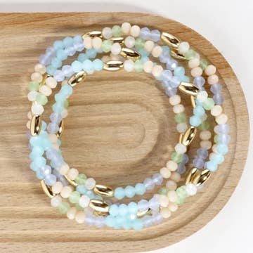This Bracelet Stack features 10mm Natural Amazonite Round Beads, 10mm Faceted Octagon Natural Amazonite, 6-8mm Gold Plated Hematite, and 10mm Faceted Natural Amazonite. The stack brings a mix of textures and earthy tones. ACCENT: Charm (Learn About 18K Gold Ion Plated Stainless Steel) STYLE: Bracelet Stack MATERIAL: 1. 10mm Natural Amazonite Round Beads 2. 10mm Faceted Octagon Natural Amazonite 3. 6-8mm Gold Plated Hematite 4. 10mm Faceted Natural Amazonite HYPOALLERGENIC: Yes (Sensitive Skin Friendly) SIZE: 6.25 - 7.25 Inch Circumference JEWELRY CARE: Learn More