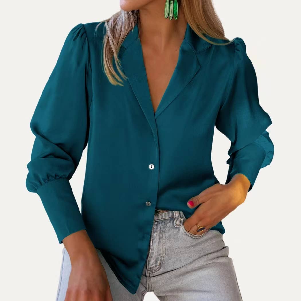 Wholesale Lady Grace Solid Pre-Fall Collared Button Up Long Sleeve Top