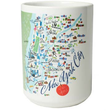 This 12 Oz New York Empire State Building mug is dishwasher safe and features Mary's iconic painting on both sides. Features: * Dishwasher safe * Original iconic New York City Empire State Building artwork by Mary Ellis printed on both sides * 12 Oz ceramic white coffee cup