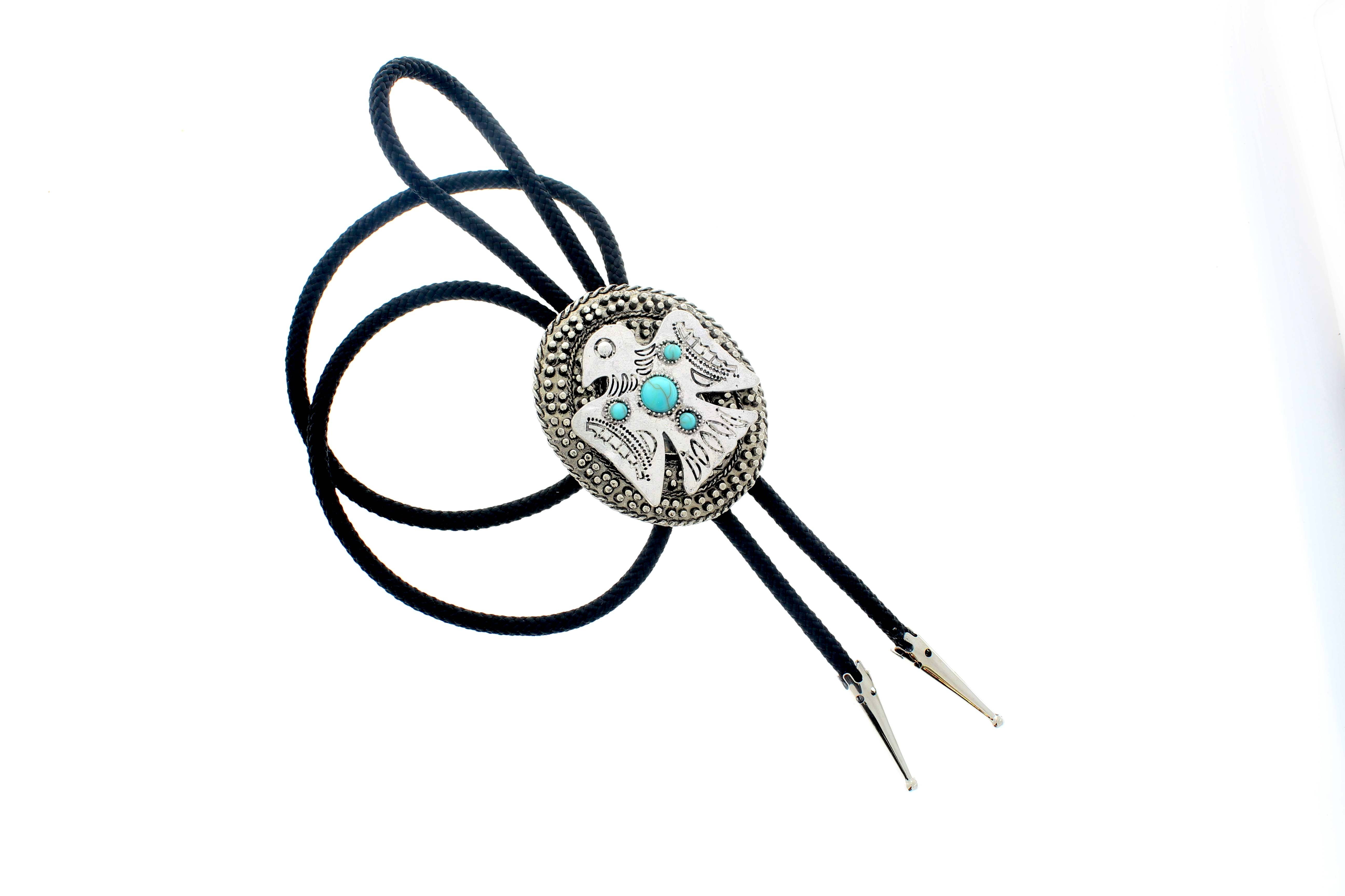 Black scorpion bolo , black nylon cord, 36" adjustable cord, Gold tips, hand made in USA