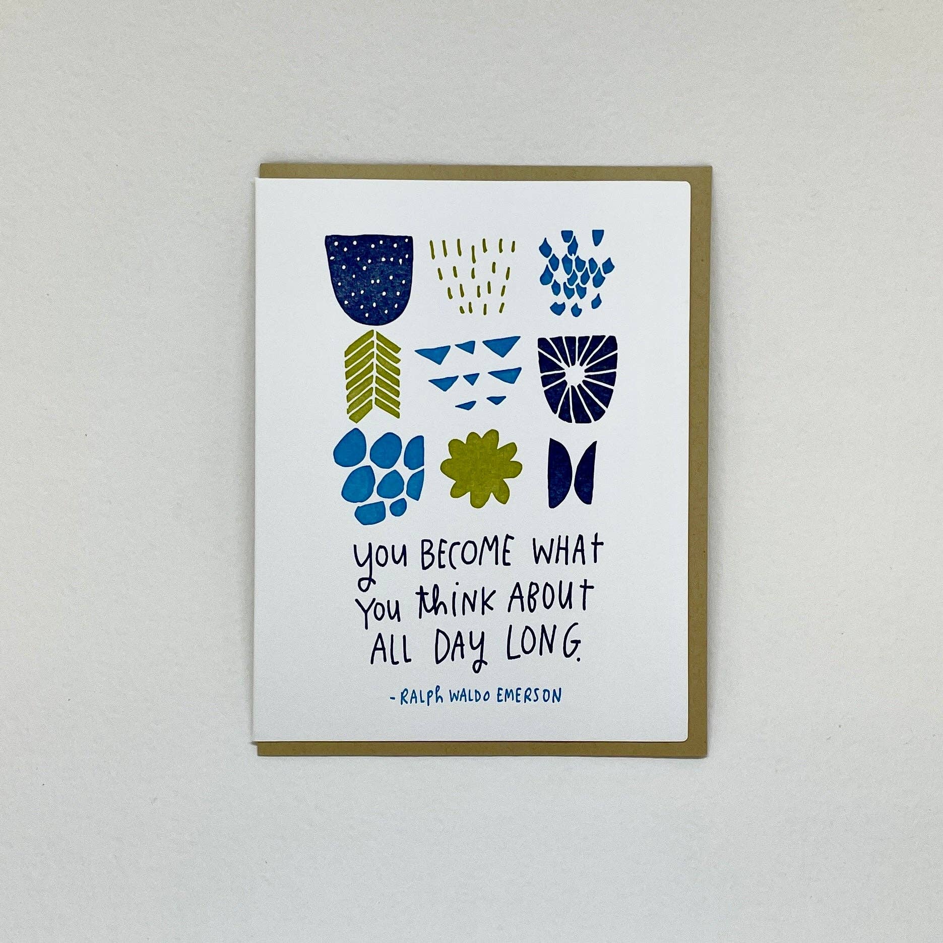 The Fine Print • 4.25 x 5.5" (A2) folded card • Blank inside • French Speckletone Madero Beach paper • Starch Rain envelope • 2 color Risograph print • Protective cello sleeve