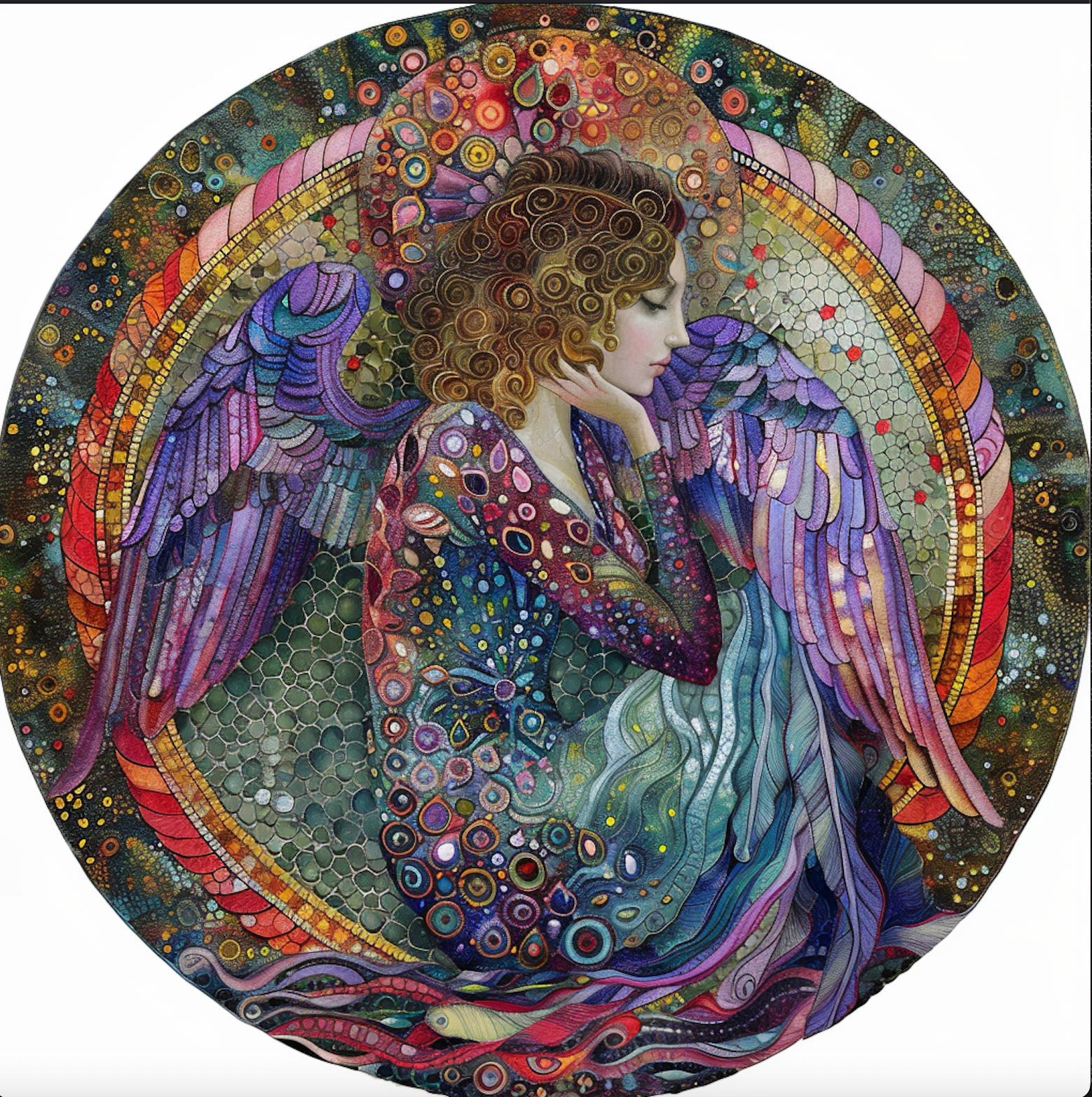 Beautiful Angel Art Tambourine and Ribbon