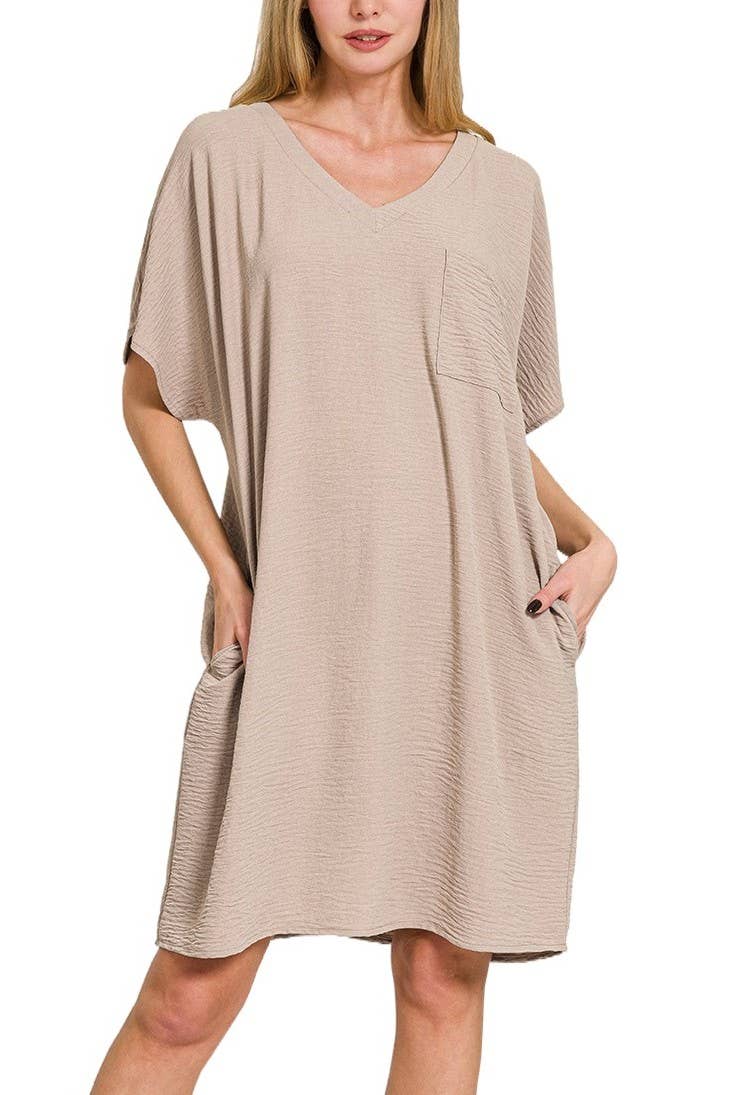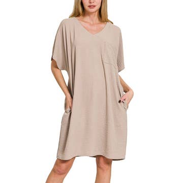 95% POLYESTER 5% SPANDEX SHORT SLEEVE ROUND NECK SOLID URBAN RIBBED MINI DRESS WITH SIDE POCKET AND ROUND HEM DETAIL MODEL SIZE: HEIGHT 5'6", BUST 32", WAIST 24", HIPS 32" WEARING SIZE: SMALL *The garment color may differ slightly upon arrival due to being taken with professional lighting also depending on what device you maybe using to shop*