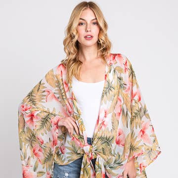 Ebonaiti - Wholesale Kimono - Women's - Hibiscus Kimono Beach Cover Caribbean tropical watercolor