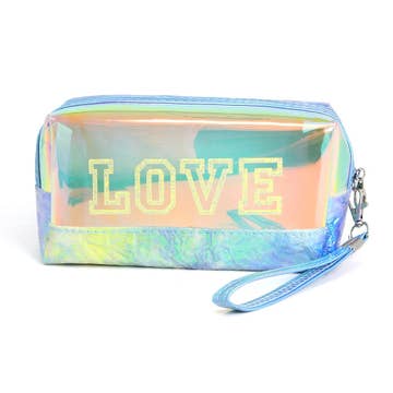 • Size : 9" X 5.75" X 2.4" • Zipper Closure • Material : 100% TPU • Add a touch of shine with this holographic transparent cosmetic pouch, designed with a sleek triangular shape and sturdy zipper. Perfect for storing makeup, skincare, or travel essentials, this stylish bag combines practicality and fashion for everyday use or on-the-go organization.