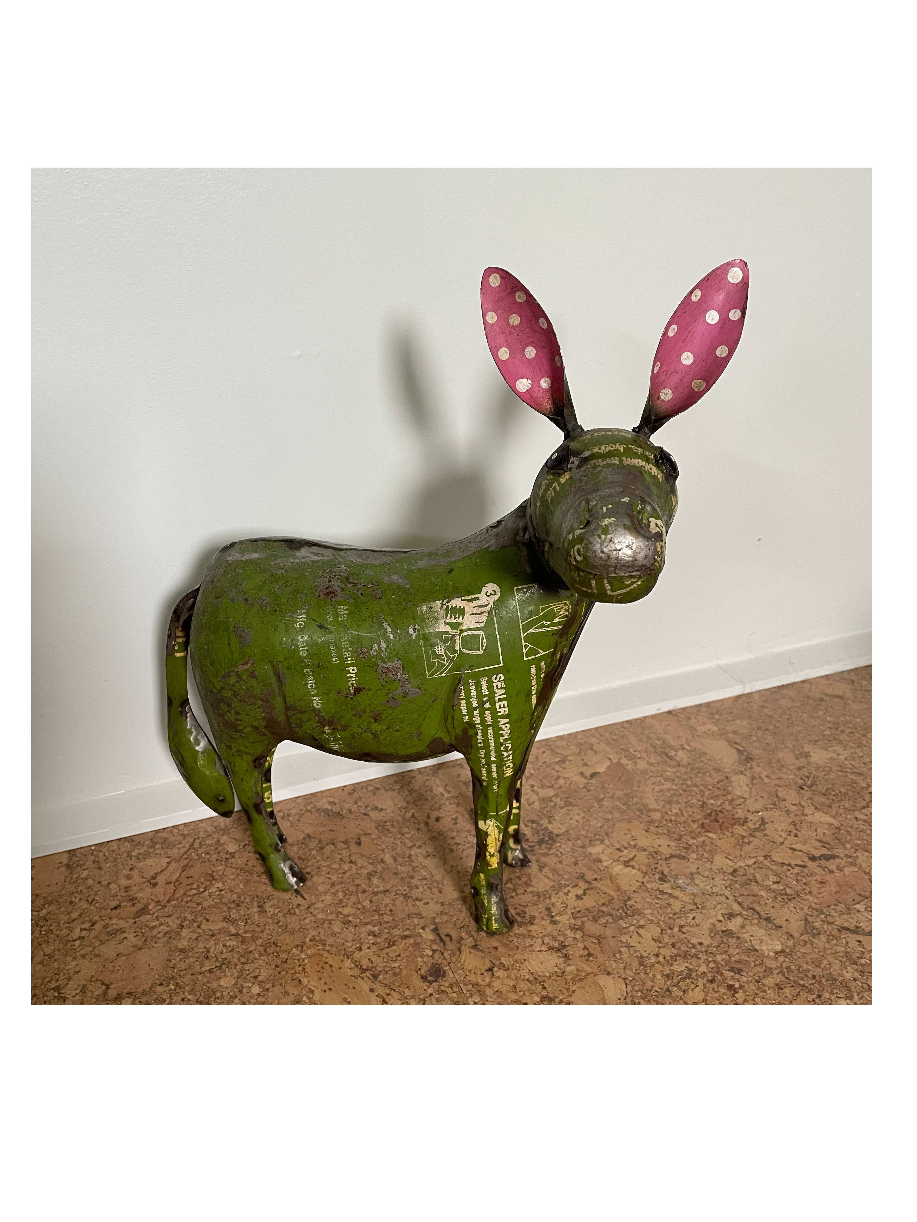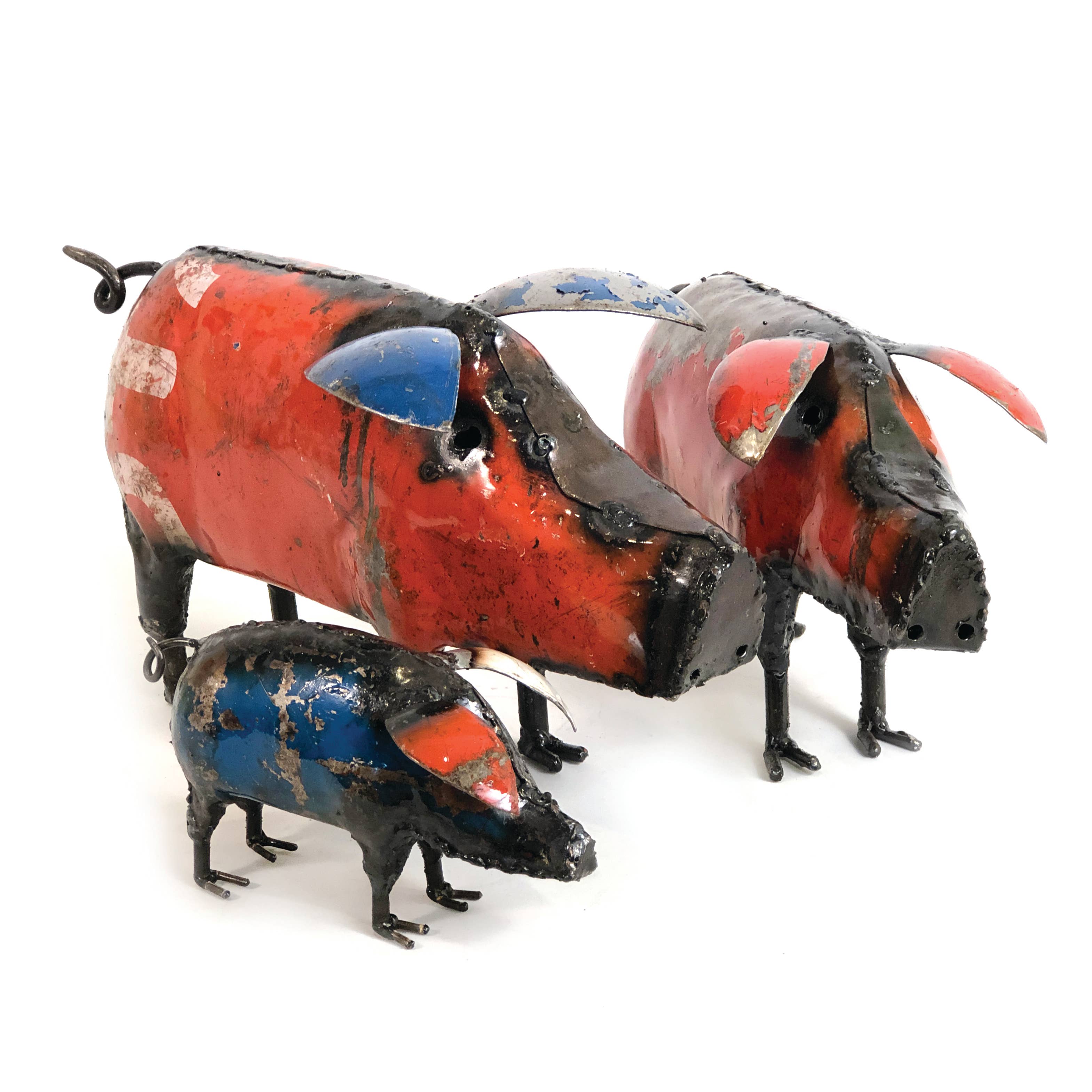 This cute little Pink Piggy went to market, to see if she could get adopted. She's looking for a nice home where she will be loved. This Pink Piggy is handcrafted using 4 small recycled horseshoes, nails, washers, and a metal spring for the tail. This Piggy is very easy to take care of and is an indoor and/or outdoor piggy. It makes a wonderful gift, especially for that person that loves little pink piggies and does not have room for big piggies. SIZE: 4" Width x 4" Depth x 7" Height. Dimensions are approximate and may differ slightly. HANDMADE IN THE USA