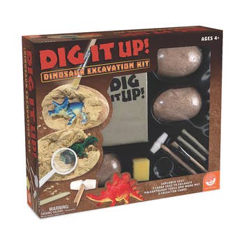 This is an easy add-on gift for holiday shoppers – an exciting and engaging stocking stuffer for kids retailing for under $15! - Our active excavation kits offer children a chance to chip away at the egg and reveal a fully dimensional dinosaur skeleton. - Six styles of dinosaurs are included in the assortment and identified on the box, perfect for collecting multiples. - Skeletons snap together and do not need glue. Includes: 12 dig kits with excavation tools size: 4" egg, 3” figurine Boxes: 3”W x 3”D x 5”H Products marked with the STEAM tag are designed to spark children's interest in Science, Technology, Engineering, Art, or Math, and grow their cognitive skills in these areas. Kids | Children | Education | Enrichment | Nature | Wildlife | History | Souvenir | Museum | Adventure | Archaeology | Geology