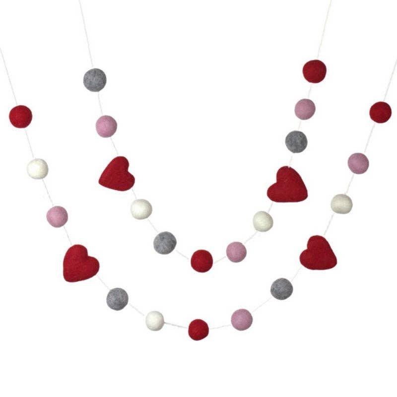 Felt garlands are a sweet and elegant touch for any home, holiday or seasonal decorating. Our felt shapes are made from 100% New Zealand wool, hand felted in Nepal by certified fair-trade female artisans. We then assemble, carefully package, and ship out the final products from our studio in Perrysburg, Ohio. ♥ Felt balls measure 1". Hearts measure approx. 1.75". ♥ Garland is a 6 ft string with 21 balls + 4 hearts. ♥ Felt shapes are moveable on the garland with gentle pressure so you can space and arrange them however you would like. Once in place, shapes will not move on their own. ♥ On the final arranged product, the balls will not be touching- they will be spaced approx. 2-3” apart. ♥ Garland comes as one single strand, or you can use two separate strands to create the double strand look. ♥ Handcrafted and ecofriendly ♥ Garlands come beautifully packaged- wrapped on a chipboard holder to prevent tangling, protected by a clear packaging bag, with a care card included.