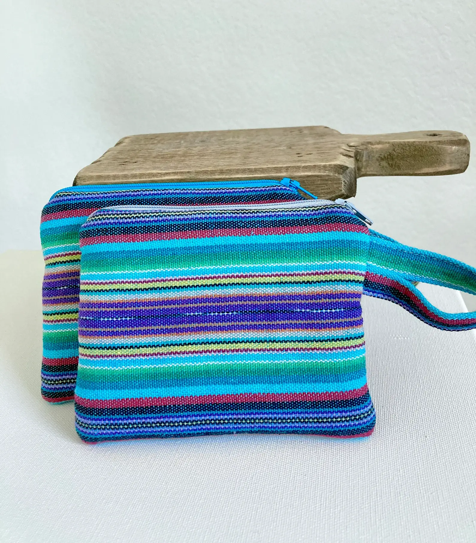 Bag with zipper tassel. Measurements: 8" Wide X 5" Tall Features: -Quality Cotton fabric. -Nylon YKK zipper closure. -Fully lined with all raw edges enclosed. -Soft/thick inner layer for padding. This is not stiff but super soft and stable. -Side loop to attach key chain. Uses: -Keep your Essential oils safe at home or on the go. -Remove your oil insert to use bag for other options. -Wallet for cash, and cards. -Use to organize your larger purse. -Add a wrist strap to the side loop for a hands free wristlet. -coins, dollar bills, chap stick. -Organize your receipts. -keep your sunglasses protected.