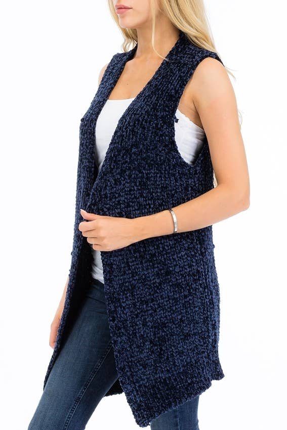 Women's Casual Solid Knit Long Vest with Pockets