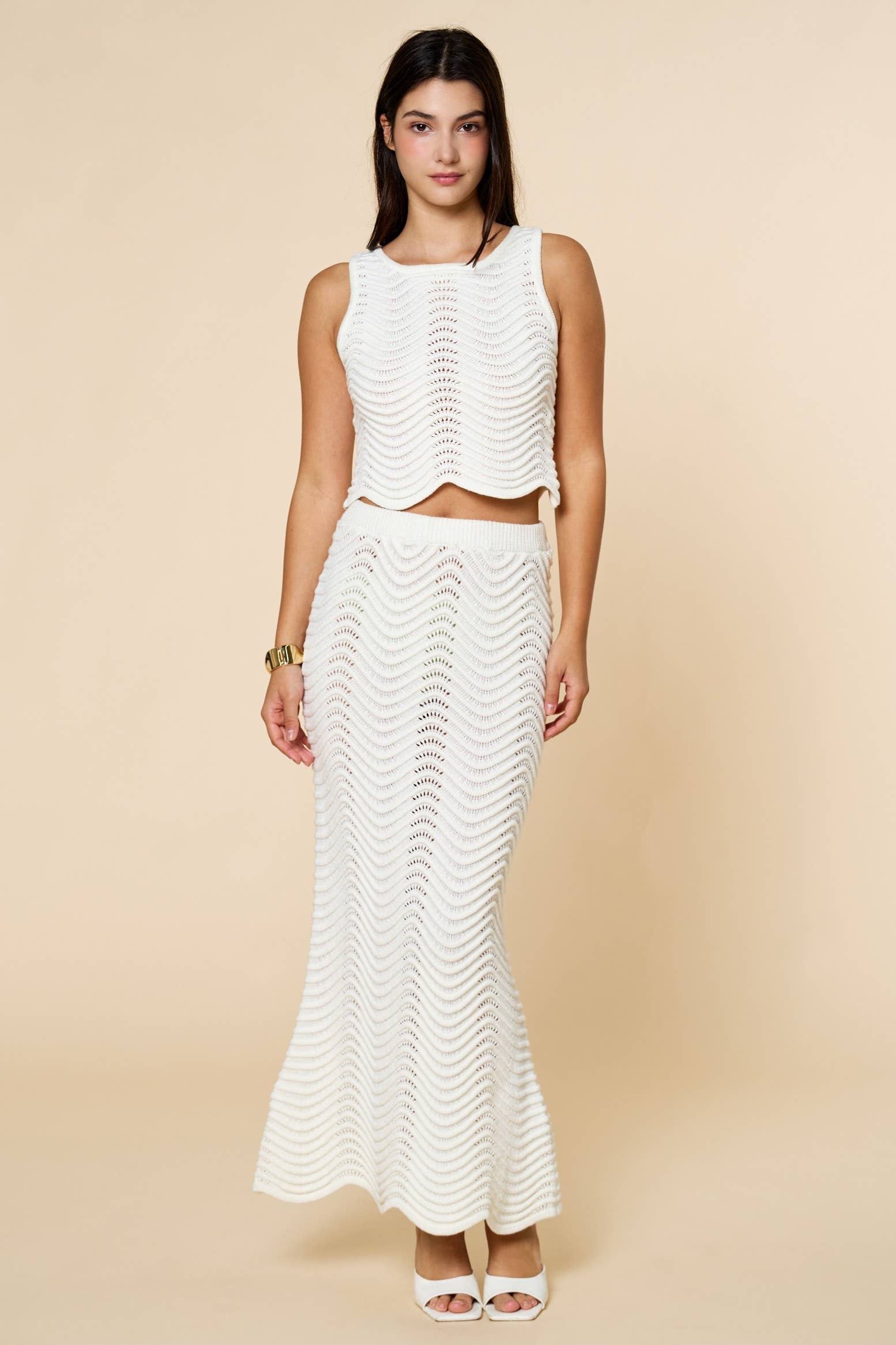 Dripping with elegance, the Whitney Set will have you saying "I do" to every invitation, proposal, and event that comes your way -- can't you see it? This two-piece set comes with a high-slit lined skirt and asymmetrical statement sleeve top. A sexy deep-v shows your back, while the skirt rests comfortably and modestly at your waist. A crop-top even Grandma will approve of.