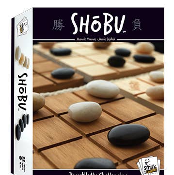 Beautifully Challenging SHOBU is a beautifully crafted abstract strategy game for two players. ​On your turn: Move one of your stones up to two spaces in any direction, including diagonally. Match that move with another of your stones on the opposite color board – and push an opponent’s stone off the board's edge. ​Remove all four of your opponent's stones from any ONE board to win. SHOBU is made of beautiful, natural elements, wood boards, a cotton rope divider and tumbled river stones as playing pieces, giving it incredible table appeal. Instantly familiar, yet wholly unique unto its own, SHOBU feels like a game that has stood the test of time. The rules are amazingly simple and can be learned in moments, yet halfway through your first game, you realize the game has a depth and spatial challenge similar to 3-D chess. Simply brilliant.