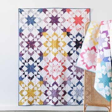 A different take on the Dresden plate quilt block. This quilt and coordinating pillow are paper pieced. Choose fabrics for a bright rainbow to make this stunning project.