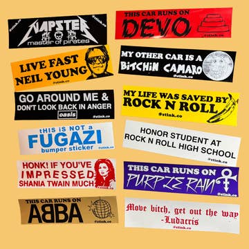 Made in United States Audience: Everyone and Men Color: Black and Yellow Is Set: Individual Special Feature: Glossy, Vinyl, Water Resistant, Waterproof, and Weatherproof Theme: Art & Music Tone: Funny Product Language: English Weight: 1 g (0.04 oz) Packaging: Plastic-free and Recyclable