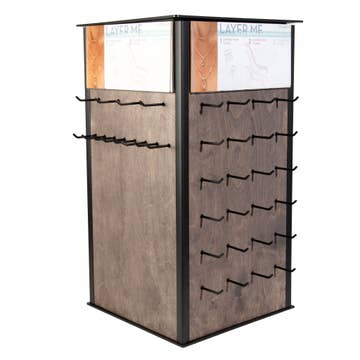 $1 ONLY with the purchase of any 32+ Wild Woolies bird ornaments. This handsome eco-display is made with sustainably harvested Himalayan paper over recycled paper board. If it wears out, just recycle it! A nice complements to our natural felt product. Ships flat and easy to assemble. Removable top reveals lots of room inside for storing additional inventory. Includes 16 plastic peg hooks for each hole. 22"h x 15"dia.