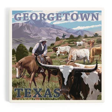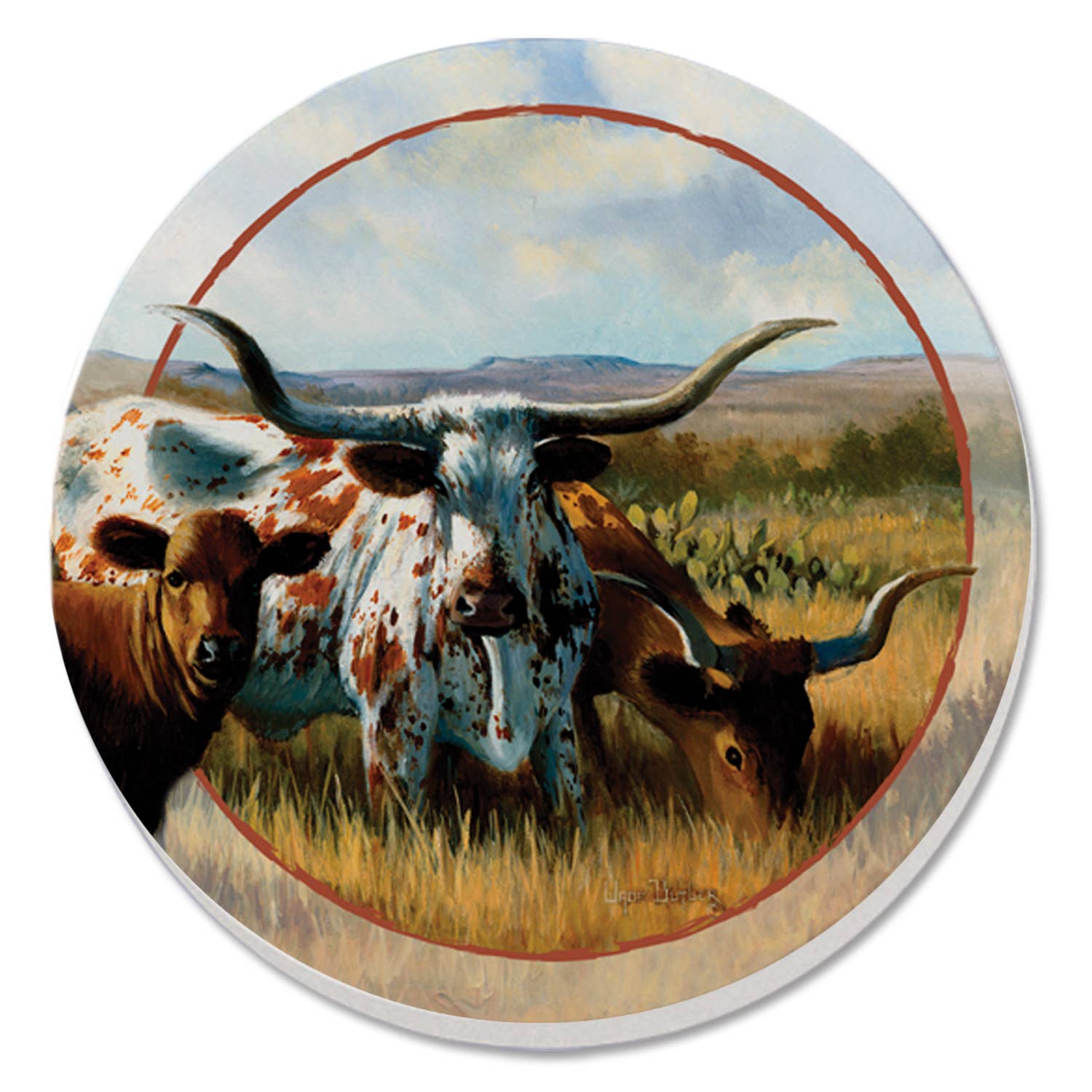 Thirstystone "Longhorns" Round Absorbent Stone Coaster 4pk