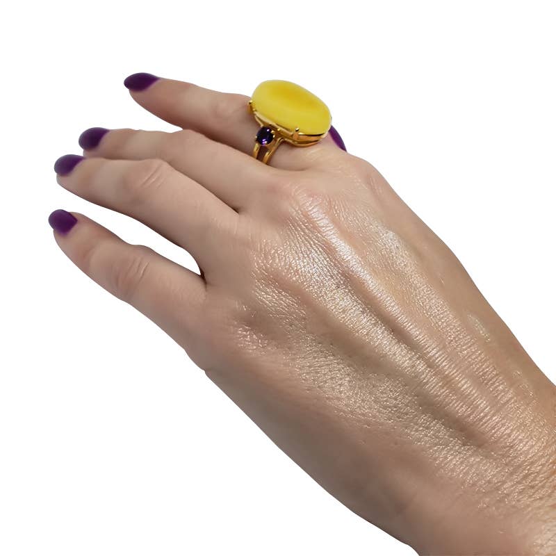 Ultra Lit by SaraBeth Post Eskuche presents the Blow Pop Ring, a statement piece that exemplifies our dedication to luxury and craftsmanship. Handblown from durable, hollow borosilicate glass, this cocktail ring is an embodiment of glam. It's plastic-free, making it an eco-conscious choice. Ideal for ringing in the New Year or adding a pop of sparkle to any outfit, this ring is designed to dazzle and boost your confidence, be it at a gala, a cocktail party, or a casual gathering.