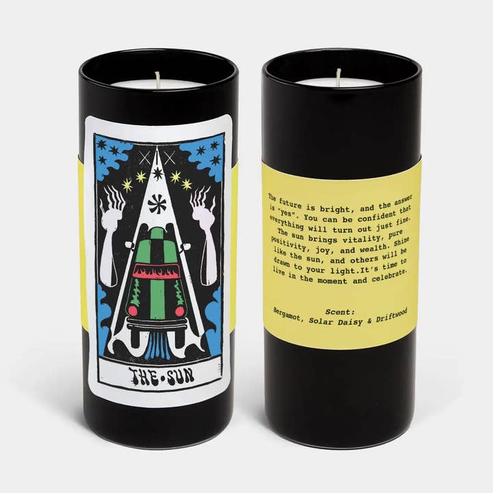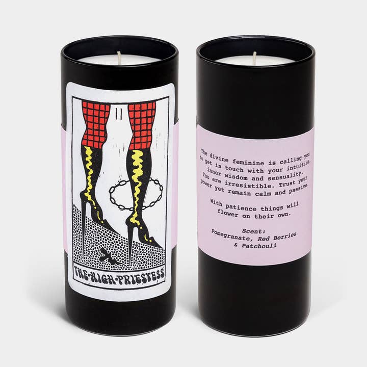The Mystery Card is for true Tarot lovers. Just like a live Tarot reading, the card you receive is guided by chance and fate - it’s a surprise every time. Each Tarot Candle combines three essentials of a Tarot experience: a unique Tarot illustration, a Tarot reading, and a beautifully scented candle. Every scent is crafted to match its specific card, and the mystery unfolds when you open the gift. Possible cards in the Mystery Pack: The Moon, The Star, The Sun, The Empress, Death, The Fool, The Hermit, The High Priestess, The Lovers, The Magician. Perfect for: * Thoughtful gifts for birthdays, Mother’s Day, or “just because” moments * Spring and Summer inspiration - perfect for new beginnings * Shoppers seeking something personal, expressive, and unexpected About the Artist: Sophy Hollington is a British artist based in East Sussex. She creates intricate, symbolic linocut prints, blending folkloric forms with timeless, modern design. Product Information: * Scent: Blood Orange, Wild Moss & Embers * Size: 6 x 2 in (15.2 x 5 cm) * Weight: 12 oz (340 g) * Burn time: ~20 hours * Materials: Soy wax, cotton wick * Eco-friendly gift box included * Hand-poured in the USA with custom fragrances * Features award-winning illustrations by Sophy Hollington