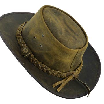 - Brim 1 1/2" Crown 3" - Removable Sweatband - Cowhide Leather - Featherweight The Bromley leather top hat sports a practical streamlined brim and a low, wide, understated crown. Leather top hats, steampunk hats, mens leather top hats, top hats, for him, for her, voodoo top hats, festivals, renaissance, biker, skulls, motorcycle, biker rally, pirate hat, spring, summer, fall,