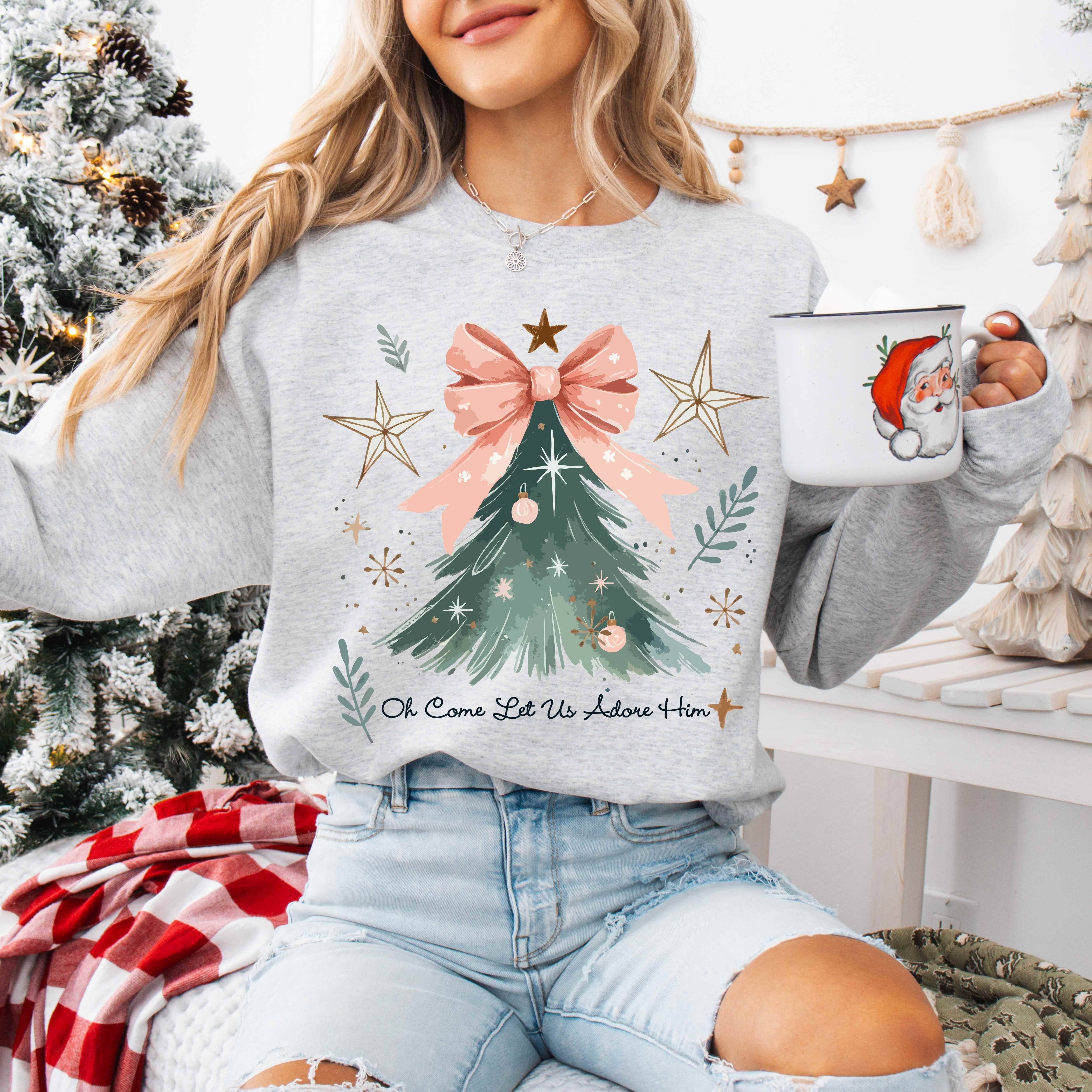 DTF TRANSFER - Christmas Tree White & Red Bow CH007