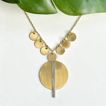 What happens when the sun goes below the horizon? My son asked me this question one day, and I had this mental image of an orb below the sea. It was the inspiration for this soft, geometric design. This horizontal necklace is modern and easy to wear every day. Perfect alone or stacked with other necklaces. Elegant and minimal. Product Info: The necklace measures approximately 1" (25mm) across and 0.5" (12.5mm) tall.