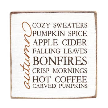 Made in United States Material: Wood Occasion Theme: Thanksgiving Season: Fall and Holiday Season Style: Farmhouse Product Language: English Weight: 113.4 g (4 oz) Dimensions: 12.2 x 12.2 x 5.1 cm (4.8 x 4.8 x 2 in)