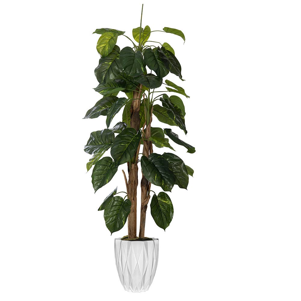 72" Ficus Tree with the Basket - Forever Leaf. Bring some tropical flair to your home with our maintenance-free faux ficus tree! This artificial plant adds a pop of color to an empty corner in your living room or foyer. Its lush, vibrant green leaves and lifelike trunk won't fade, ensuring that your plant looks fresh and new all year round. And with adjustable branches, you can easily customize the look of your living room décor to suit your personal preference without worrying about breaking anything. Add some effortless greenery to your home with our stylish indoor fake tree!