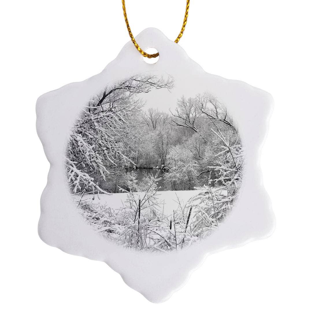 Winter Scene Ceramic Ornament with Stained Glass Image