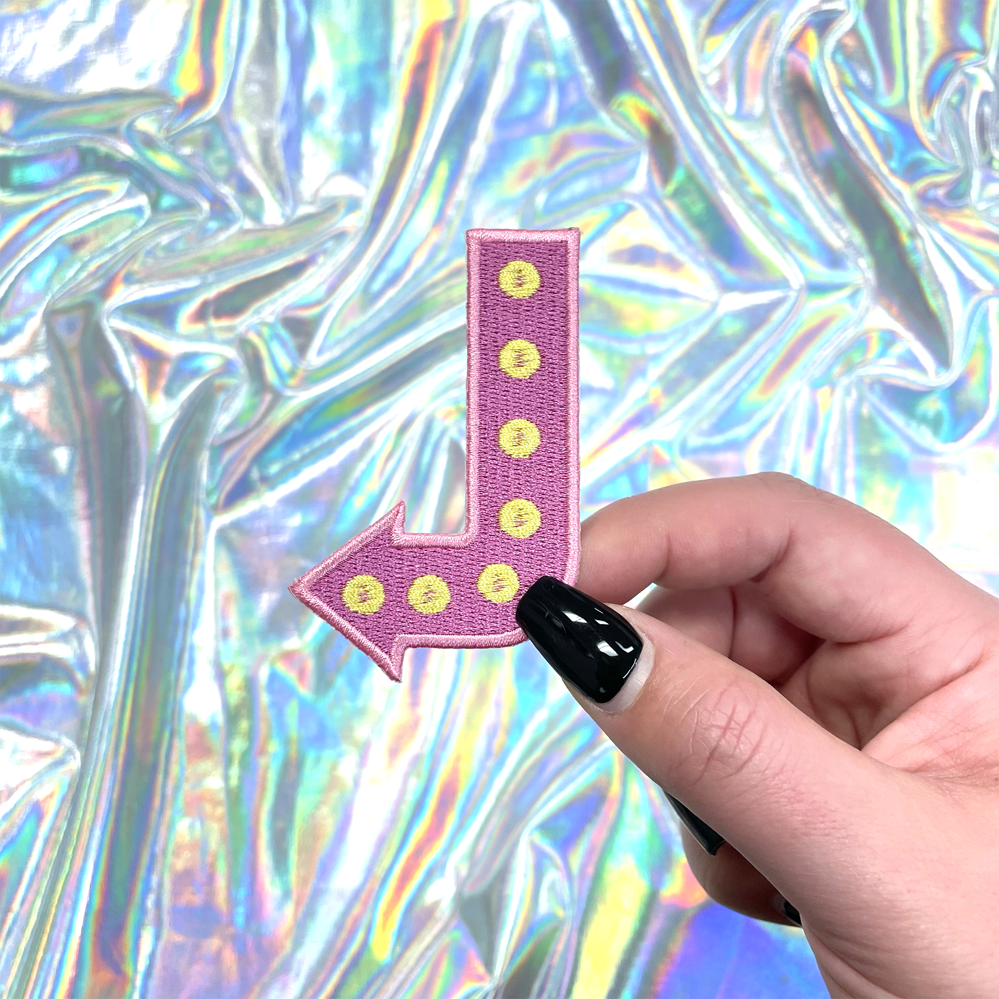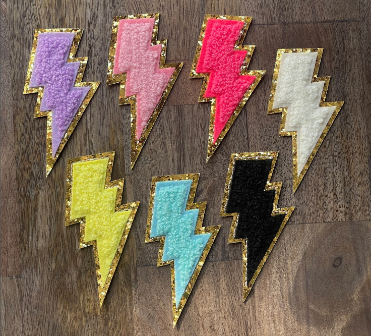 Pink lightning embroidered patch. This fun pink lightning patch is the perfect addition to your hat bar! Iron On Size: 3"