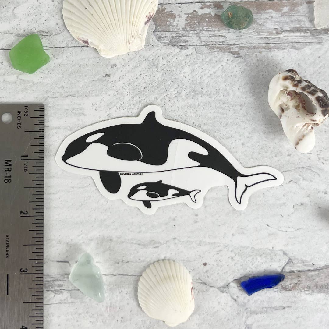 3.5" x 2" Orca sticker printed on vinyl sticker paper and covered with a glossy lamination to improve water resistance. Each sticker is handmade, so slight variations may occur. This vinyl sticker features the iconic orca (Orcinus orca), also known as the killer whale, celebrated for its striking black-and-white markings and intelligence. Printed on durable, waterproof vinyl, it’s great for decorating laptops, water bottles, journals, or outdoor gear. This ocean-inspired design would be a perfect addition for coastal gift shops, aquarium stores, marine conservation organizations, seaside boutiques, and stationery shops that cater to ocean and wildlife enthusiasts.