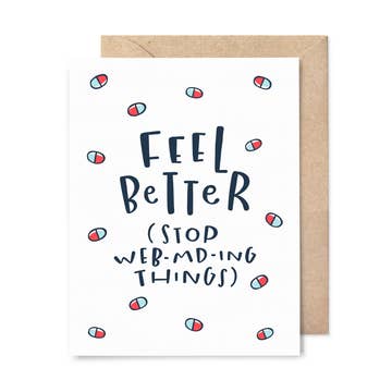 SKU: 227 Made in United States Card Count: 6 Color: Blue and Brown Is Set: Set Occasion Theme: Get Well Recipient: Everyone Season: Year-Round Special Feature: Message Inside Theme: Health & Wellness Tone: Funny Weight: 22.68 g (0.8 oz)