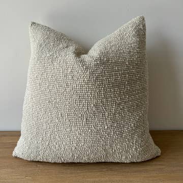 Add warmth and texture to your space with this elegant bouclé-style throw pillow. Featuring a soft, nubby surface in a neutral ivory, this pillow brings cozy sophistication to any room — perfect for layering on sofas, beds, or accent chairs. Size: 18"W x 18"L Color: Ivory Material: Soft, durable polyester Care: Machine washable for easy maintenance A timeless accent for modern, minimalist, or rustic-inspired interiors.
