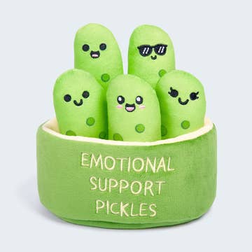 The cutest little pickle plushie for my pickle lovin peeps. Each pickle plushie measures approx 5.75” tall x 1.75” wide. Safety buttons as eyes. Filled with 100% polyester fiber-fill. 100% polyester yarn. Each pickle comes as-is; no unnecessary plastic packaging, etc.