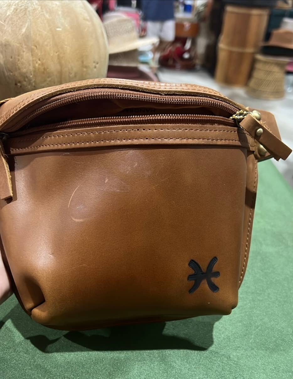 Square, compact bag. Converts from crossbody to fanny pack. Dual main compartments. Interior zipper pocket. Front exterior zipper pocket. Back exterior zipper pocket. Adjustable and removable shoulder strap. Backside belt loop. Chrome hardware. Genuine cowhide leather. Colors: Bk, Gray, LBN Size: 8"x 6.5"x 2".