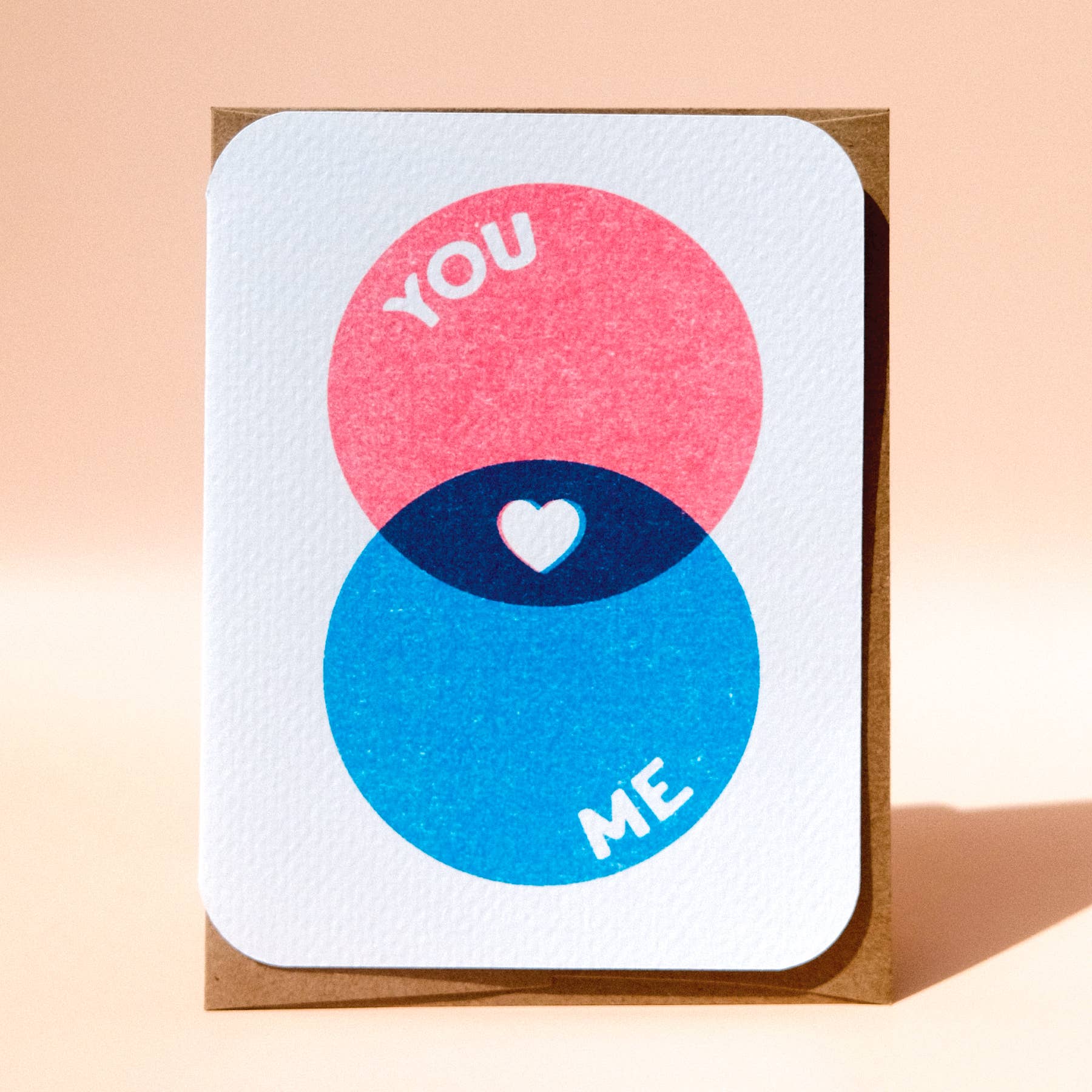 The Fine Print • 4.25 x 5.5" (A2) folded card • Blank inside • French Speckletone Madero Beach paper • Starch Rain envelope • 2 color Risograph print • Protective cello sleeve
