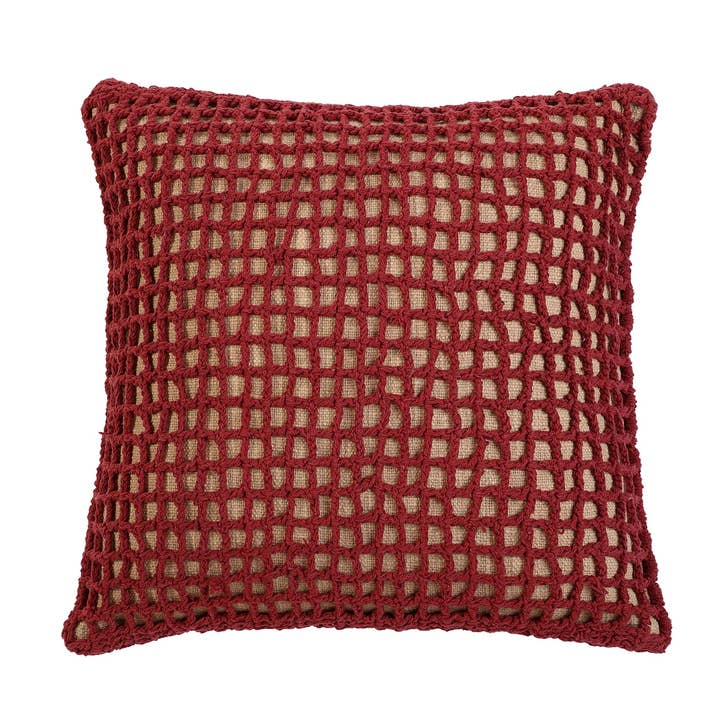 SKU: CC-KL-51_1 Made in India Color: Beige and Red Fabric: Cotton Occasion Theme: Christmas, Everyday, and Thanksgiving Pattern: Abstract & Geometric Pillow Shape: Square Season: Fall and Holiday Season Style: Bohemian Theme: Abstract & Geometric Tone: Cute Product Language: English Weight: 453.59 g (1 lb) Dimensions: 45.7 x 45.7 x 2.5 cm (18 x 18 x 1 in) Product Materials: Plastic-free and Upcycled Packaging: Plastic-free and Recycled Production: Ethically sourced