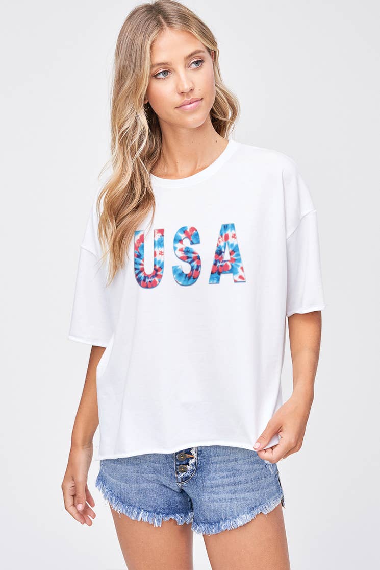 Wholesale PUFF' American Flag Oversized Graphic Top