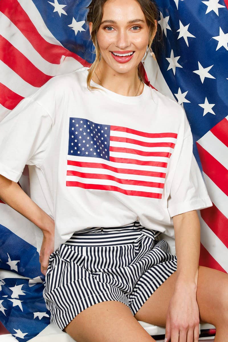 Foryeri - Wholesale Screen Printed T-Shirt - Women's - PUFF' American Flag Oversized Graphic Top1