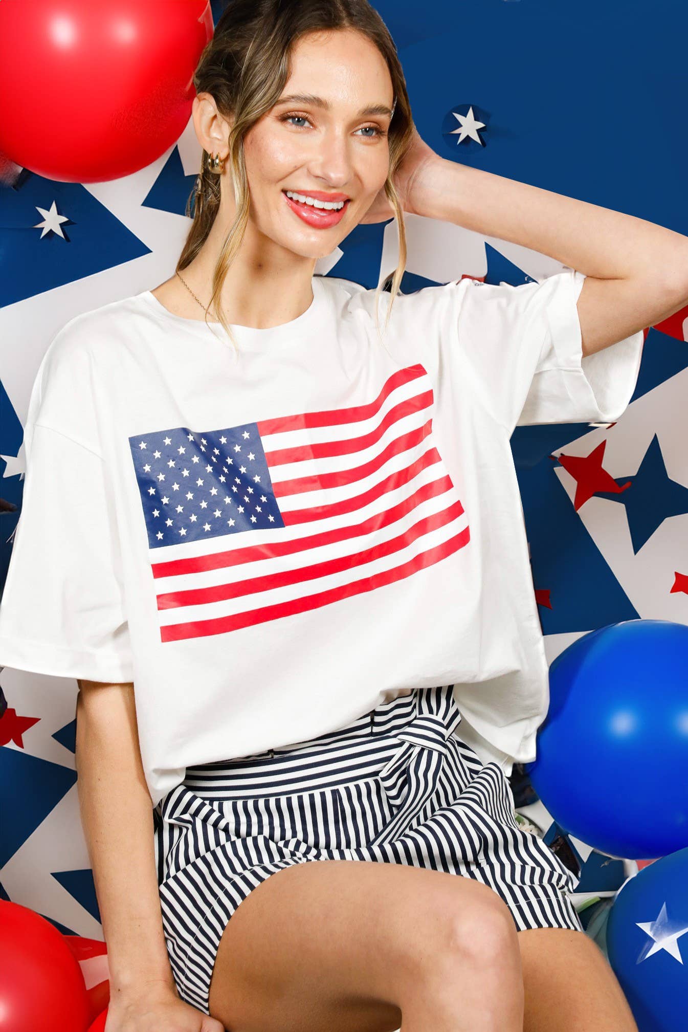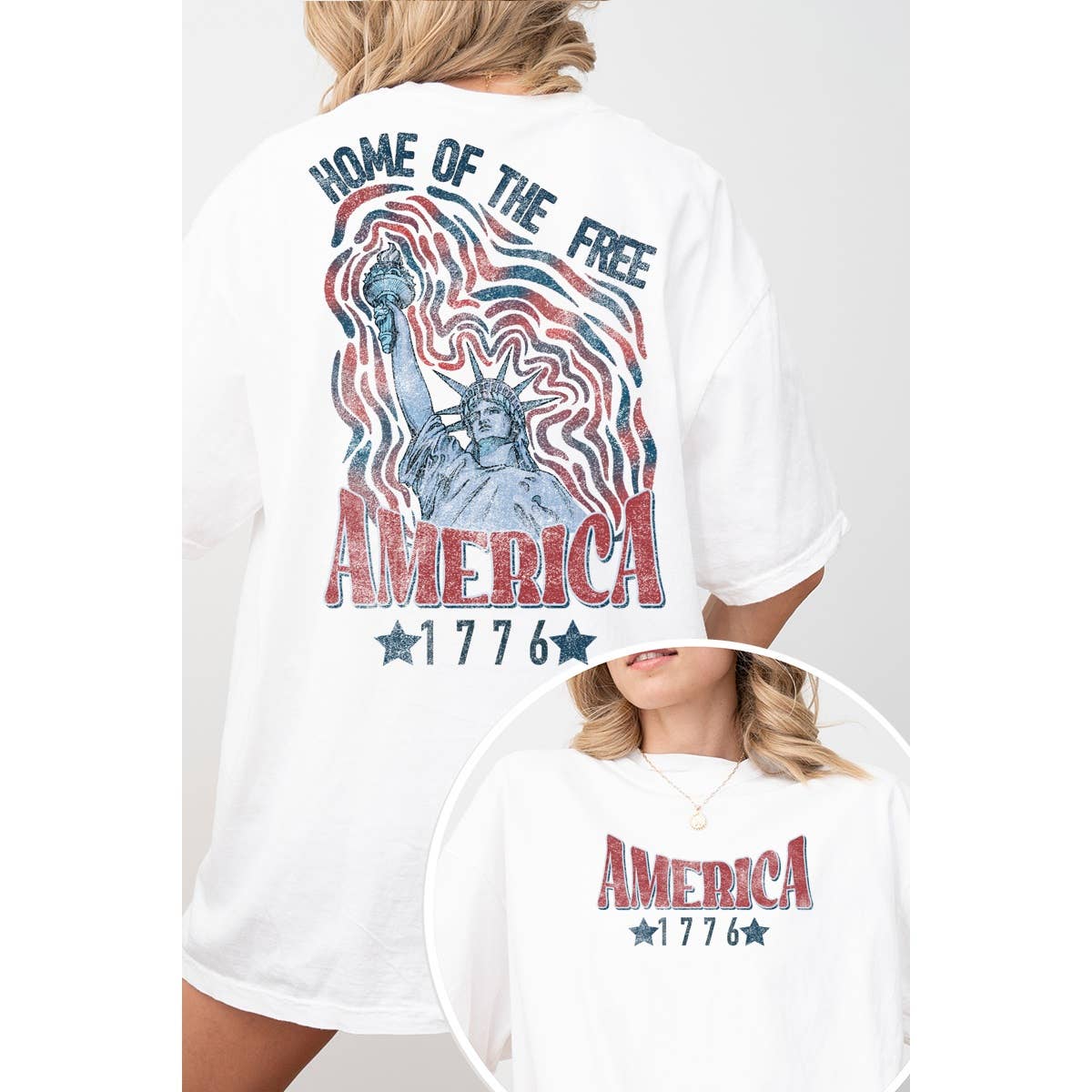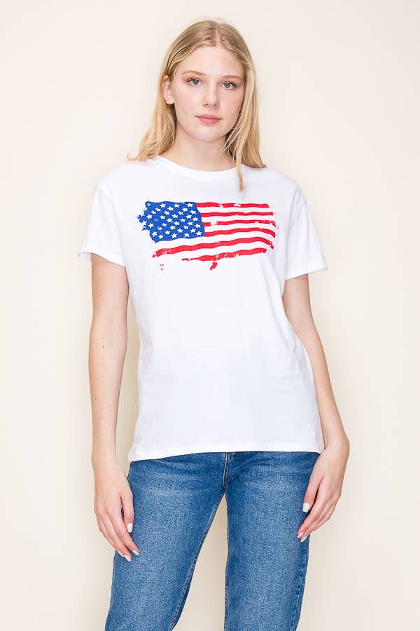 'PUFF' AMERICAN FLAG GRAPHIC, OVERSIZED, PREMIUM COTTON TEE WITH DISTRESSED EDGES