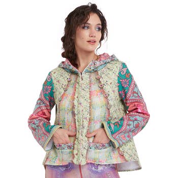 The Sailor’s Love Coat redefines timeless layering with its artful mix of stripes, florals, and handcrafted detailing that capture Aratta’s expressive charm. This washed cotton coat features a tea-wash and blue stripe combination with contrast floral print sleeves and scarf-print cuffs. Designed with front flap pockets, a removable crystal wasp brooch on the lapel, and antique gold buttons, it offers lightweight comfort and unlined versatility for transitional seasons. Perfect as a statement coat for women who love standout layers that balance sophistication, color, and craftsmanship. Key Features: • Washed stripe unlined coat with tea-wash and blue color mix • Contrast floral sleeves with scarf-print cuffs for layered texture • Two front flap pockets and back hem slit for comfort and movement • Removable crystal wasp brooch pinned on the lapel • Antique gold metallic button closure adds refined shine Construction & Materials: • Material: 100% cotton • Care: Hand wash cold with like colors; line dry • Design Origin: Los Angeles, California Style Guide: • Colors: Tea wash and blue stripes with floral contrast sleeves • Style: Bohemian, tailored, and artistic • Theme: Elevated everyday layering with expressive detail • Occasion: Transitional weather, travel, boutique styling, or evening events • Seasonality: Ideal for spring and fall Retailer Information: • Why We Made This: To create a unique statement coat that fuses Aratta’s storytelling prints with timeless tailoring. • Why You’ll Love This: Its stripe-and-floral combination, crystal brooch, and gold accents make it an instant centerpiece in any boutique display. • Pairs Well With: Aratta’s embroidered blouses, wide-leg pants, or floral dresses. • Suitable for Retailers Such As: Women’s fashion boutiques, resortwear stores, and lifestyle retailers that emphasize artisanal design. Aratta is a Los Angeles–based womenswear brand founded by designer Susanna Karapetyan, born from her passion for artistry and heritage. The label creates handcrafted, detail-rich pieces that blend Old World opulence with bohemian freedom, empowering women to express their individuality. Elevate your retail collection with the Sailor’s Love Coat by Aratta, where artistry, confidence, and beauty bloom. People Also Search: Bohemian fashion, Aratta clothing, striped coat, floral sleeve coat, artisan womenswear, boho chic outfits, resort wear Seasonal Searches: Spring fashion, summer travel looks, fall layering, holiday fashion gifts, resort style, festival outfits, boho wedding guest attire